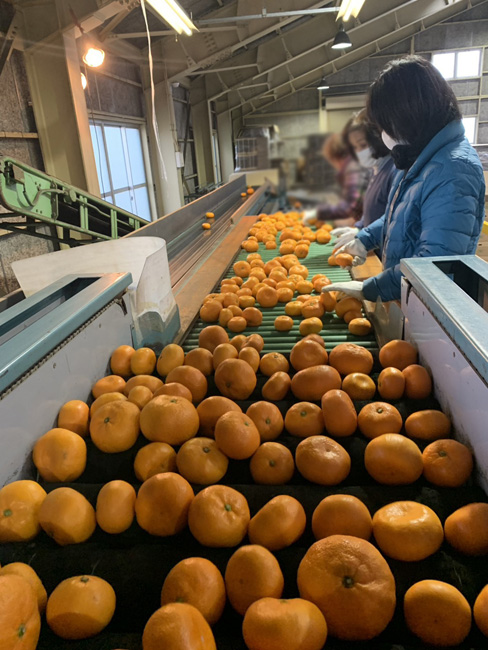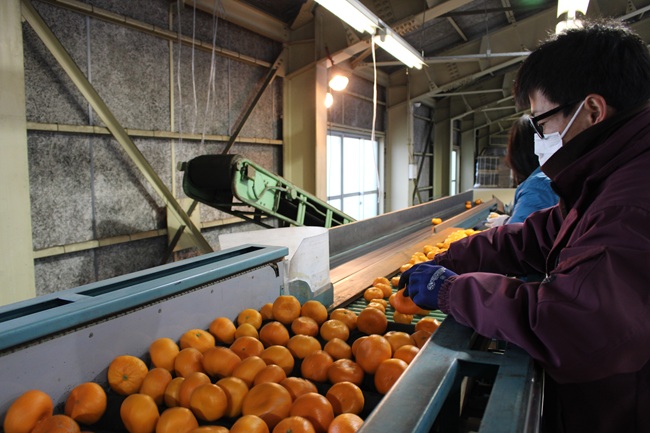 青島温州の選果の様子