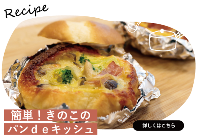 〈材料〉4人分(直径8㎝程度のパン8個分) 生しいたけ 4個 しめじ 1/2パック タマネギ 1/4個 ブロッコリー 1/4房 ベーコン 2枚 丸形のパ … 続きを読む 簡単!きのこのパンdeキッシュ